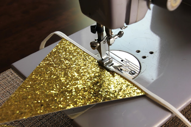 You'll want to leave a small amount of space between each triangle. This will allow the bunting the bend more easily when it's hung. Here's a close up of mine to show you what I mean: