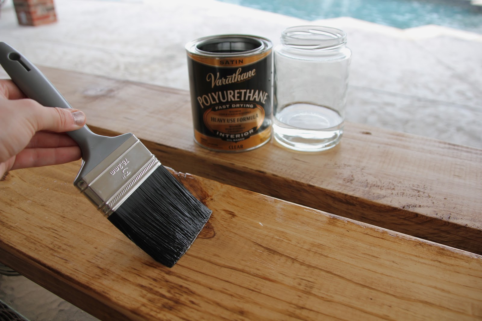 2 coats of Poly (with 30 min. drying time in between. The jar next to the poly is mineral spirits to soak the brush in between coats