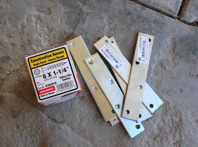 Also purchased are my brackets and 1 1/4" constuction screws. You want the screws to be just shorter than the thickness of the boards.