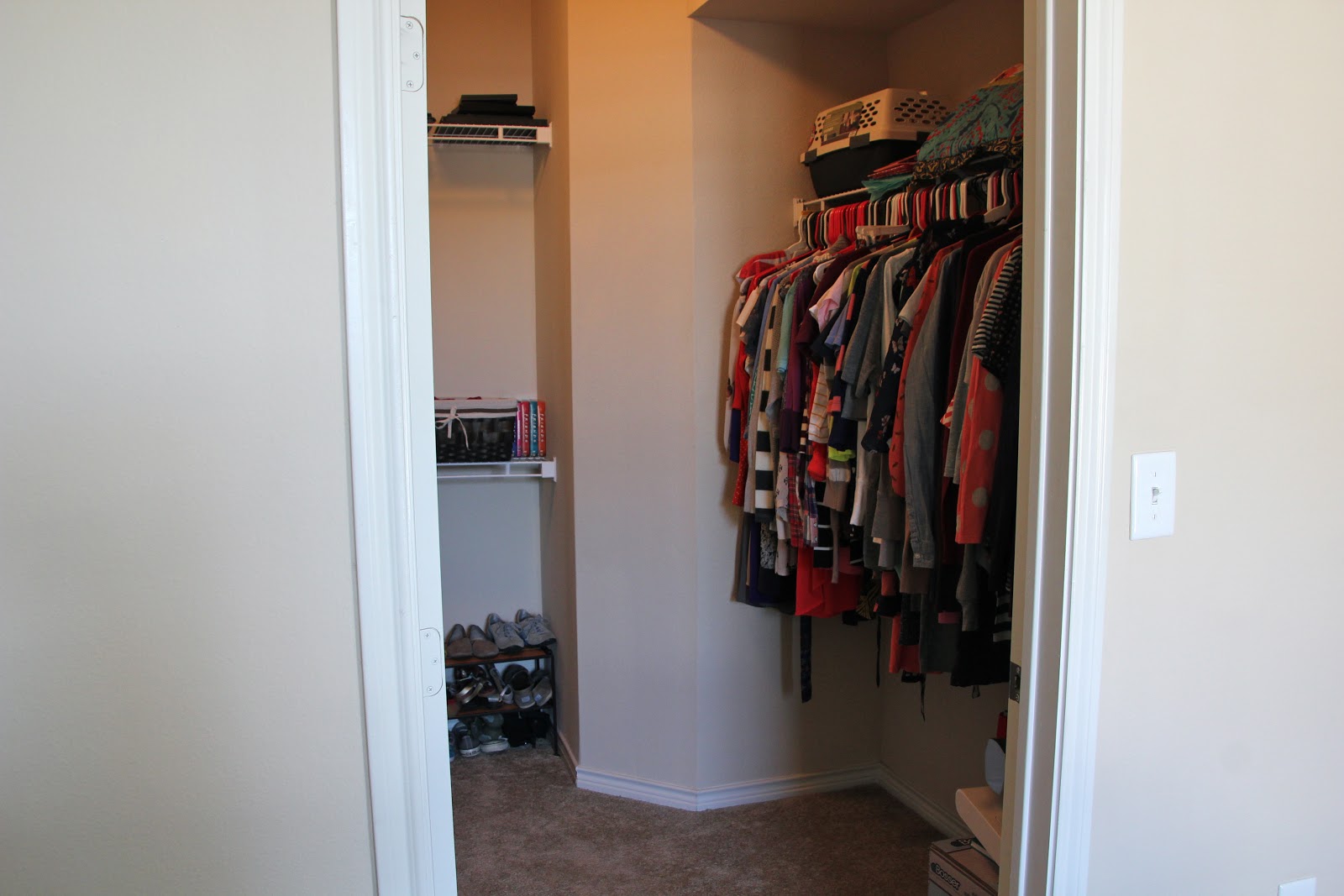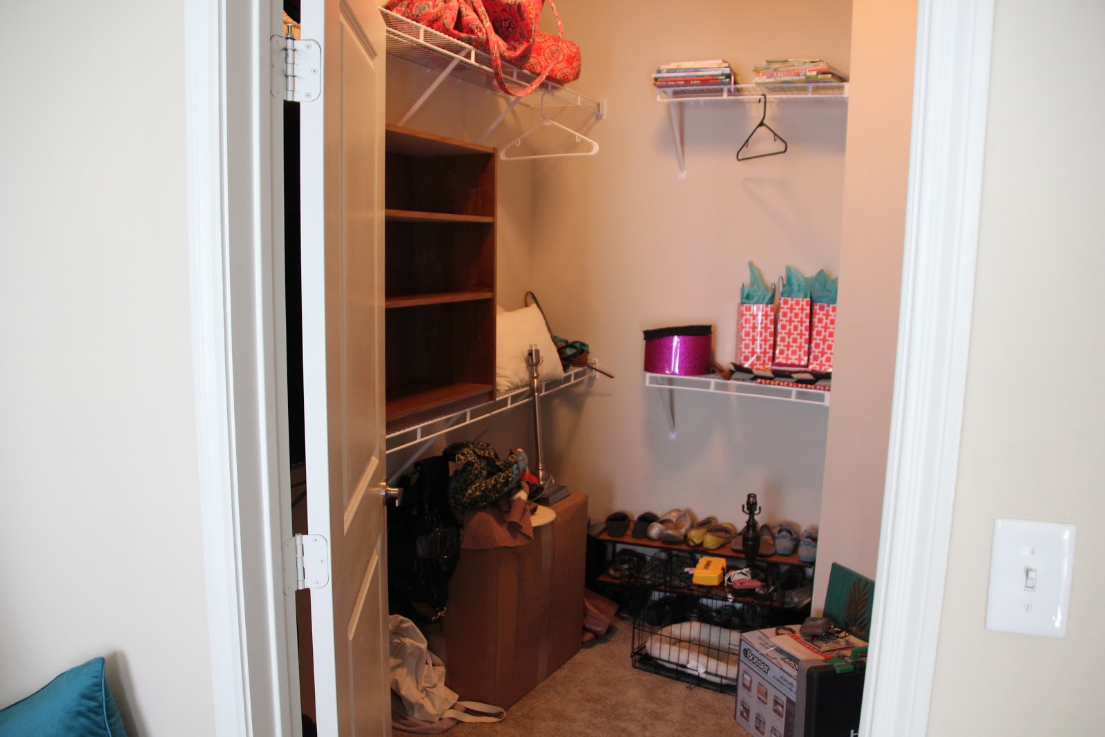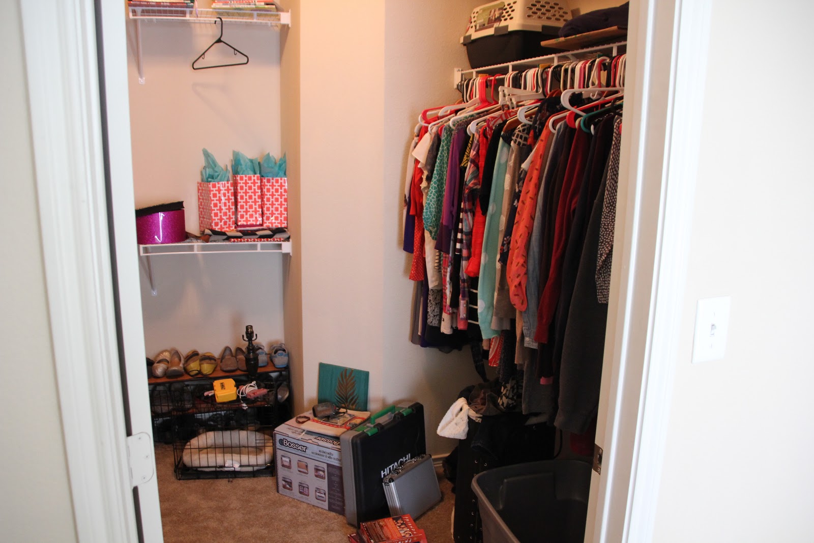 I finally got around to organizing my craft supplies. I put it off when I first moved in and before I knew it my closet looked like this: