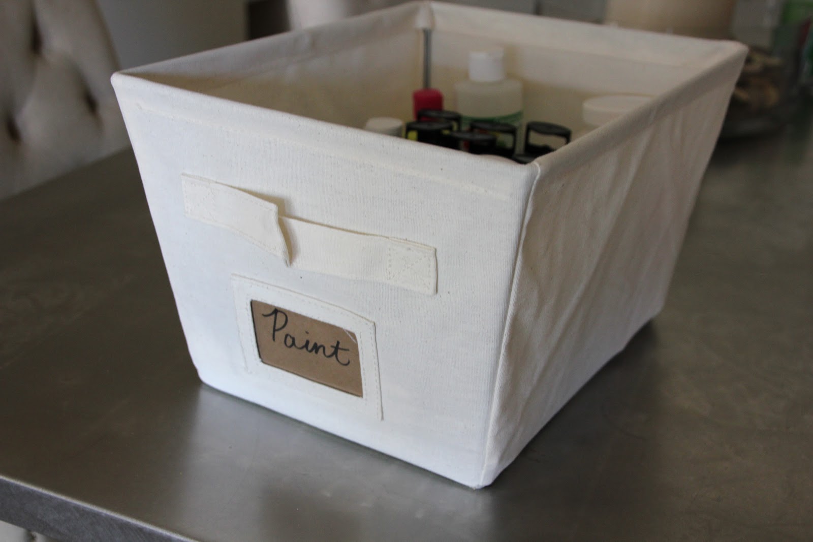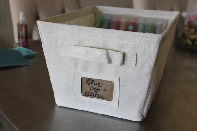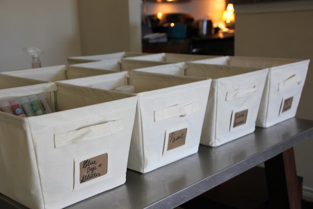 It may be tough to see with my poor lighting, but each bin has a label and houses a different category of supplies.