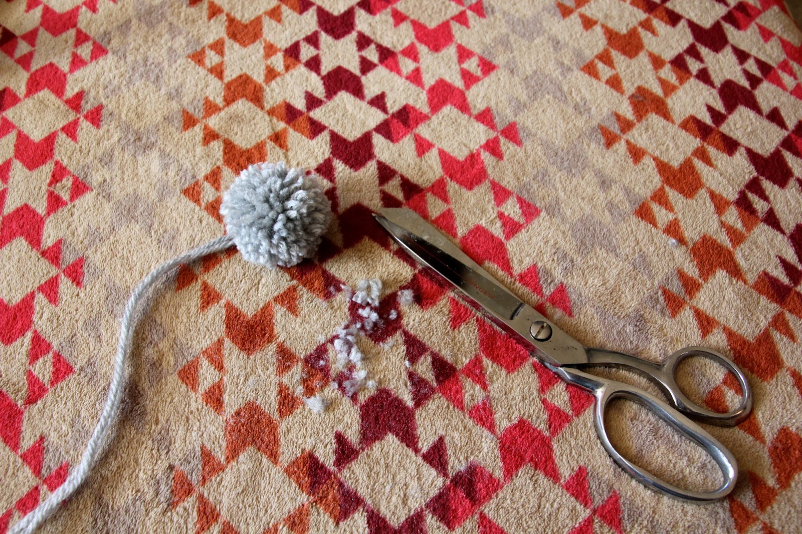 Using this tutorial, I created a dozen yarn pom poms ready to be tied on for adornment.